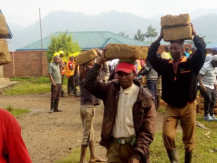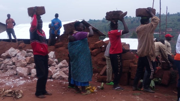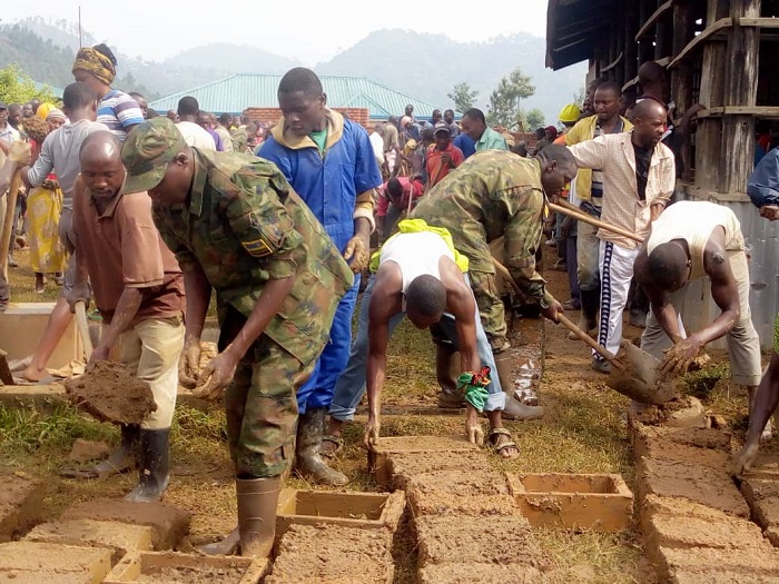 Umuganda usoza ukwezi kwa Nzeri wakorewe mu mudugudu w’Agasharu, akagari ka Runyinya, umurenge wa Mukindo. Hakozwe igikorwa cyo kubakira abakene.