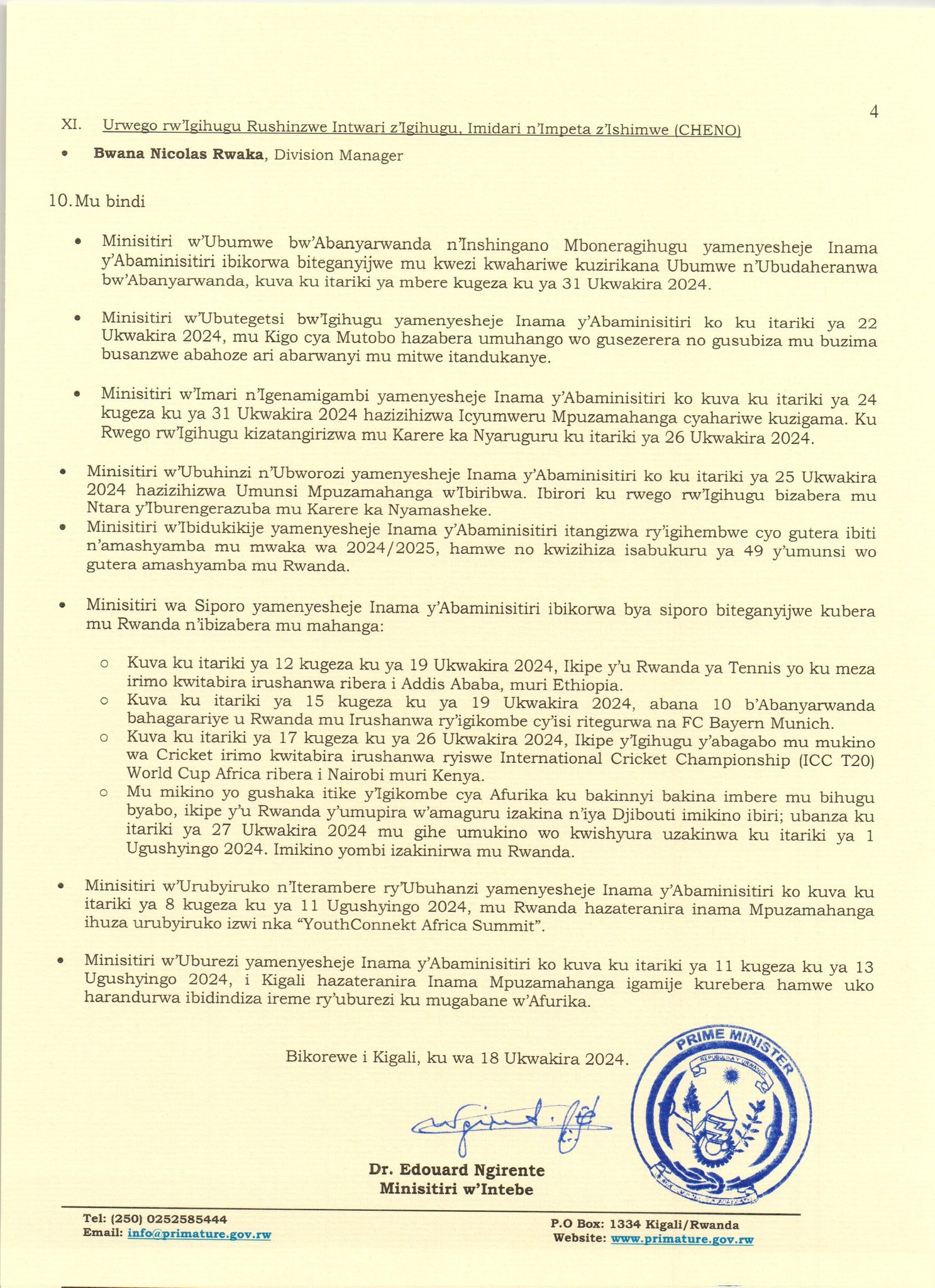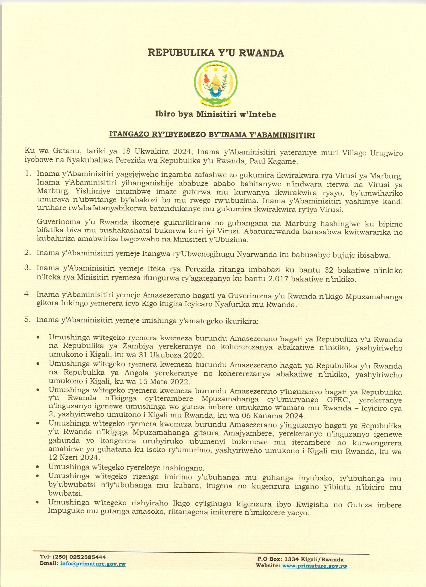 Ni umwe mu myanzuro y’Inama y’Abaminisitiri yateranye kuri uyu wa Gatanu tariki 18 Ukwakira 2024, iyobowe na Perezida wa Repubulika Paul Kagame, muri Village Urugwiro.