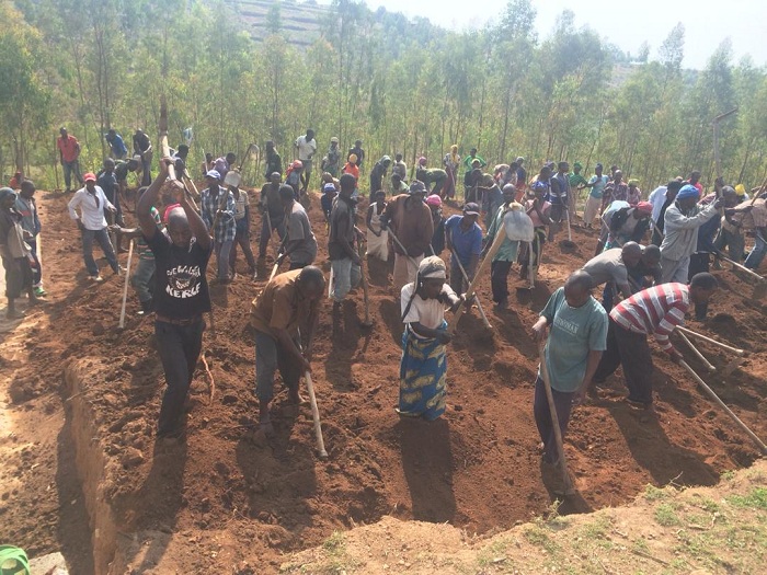 Guverineri w’Intara y’Amajyaruguru, Gatabazi JMV ari kumwe n’Abaturage n’inzego zishinzwe umutekano ku rwego rw’iyi ntara, ndetse n’Umuyobozi wa Sosiyete y’u Rwanda ishinzwe Ingufu (REG) batunganyije amaterasi ku musozi wa Bitukura uri mu mudugudu wa Bitukura Akagari ka Gashanje mu Murenge wa Kivuye.