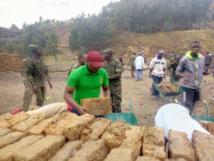Mu Karere ka Musanze mu Murenge wa Muhoza mu Kagari Ka Kigombe, mu Mudugudu wa Nyamuremure, igikorwa cy’umuganda cyibanze ku kubumba amatafari ya rukarakara yiyongera ku yandi yamaze kubumbwa asaga ibihumbi mirongo itandatu na bibiri (62,000).