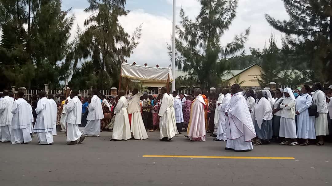 Mugenzi we ati “Yezu ni inshuti y’abantu bose, ni yo mpamvu ubona imbaga y’abantu kuri uyu munsi mukuru w’Isakaramentu Ritagatifu, dutewe ishema no kumwerekana hose tumuririmbira indirimbo zimushima”.