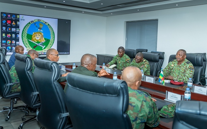 Brig Gen Freddy Sakama n’intumwa yari ayoboye, basuye icyicaro gikuru cy’Ingabo z’u Rwanda (RDF), n’ibigo bitandukanye by’igisirikare cy’u Rwanda, ndetse bagirana ibiganiro bitandukanye.