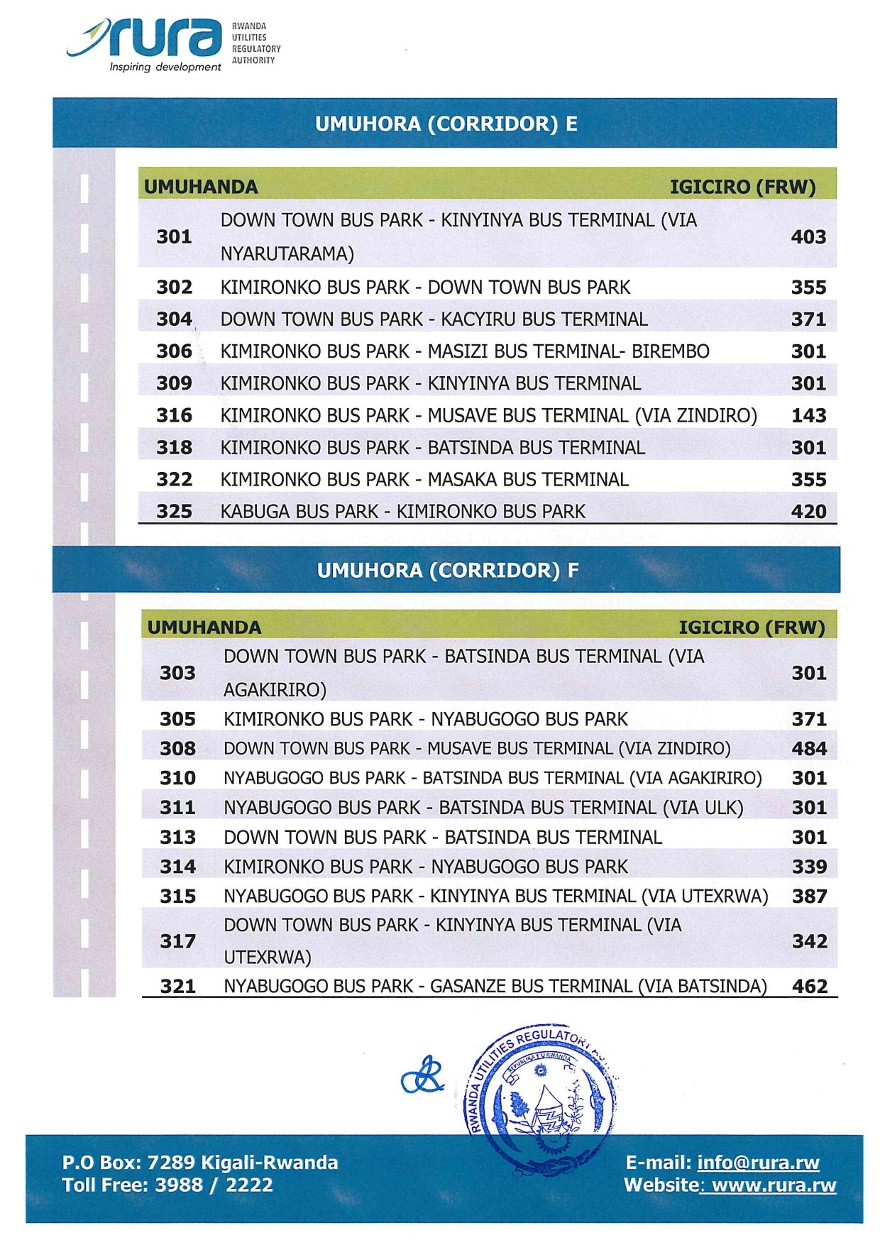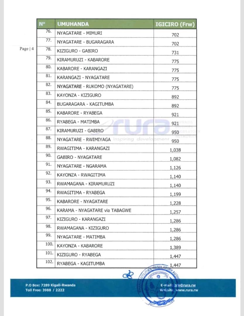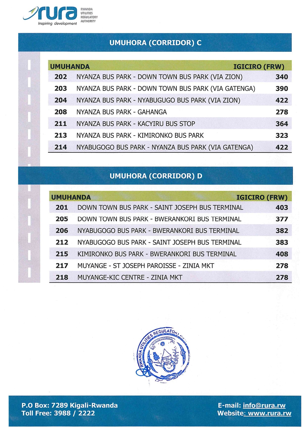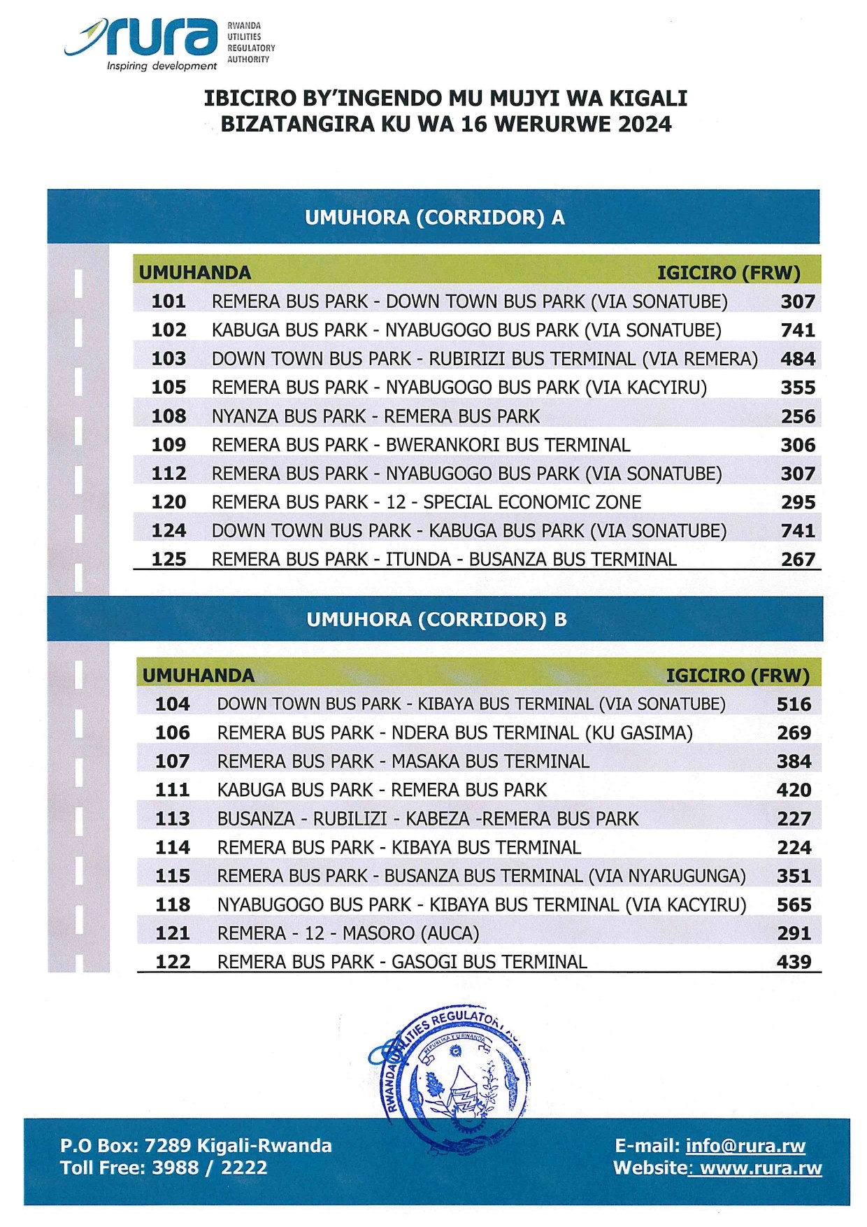 Urwego rw’Igihugu rushinzwe kugenzura imikorere y’inzego zimwe z’imirimo ifitiye Igihugu akamaro (RURA), ku wa Kabiri tariki 12 Werurwe 2024, rwashyize ahagaragara ibiciro bishya by’ingendo mu modoka zitwara abantu mu buryo bwa rusange, bikazatangira gukurikizwa ku wa Gatandatu tariki 16 Werurwe 2024.