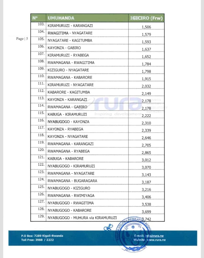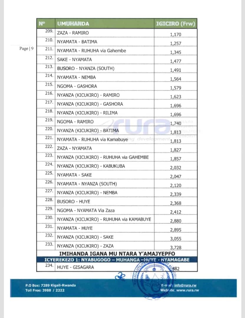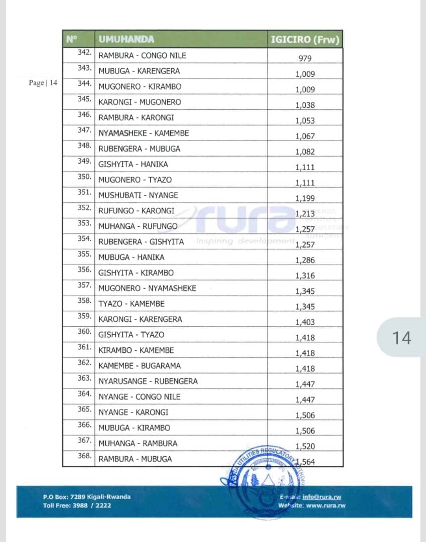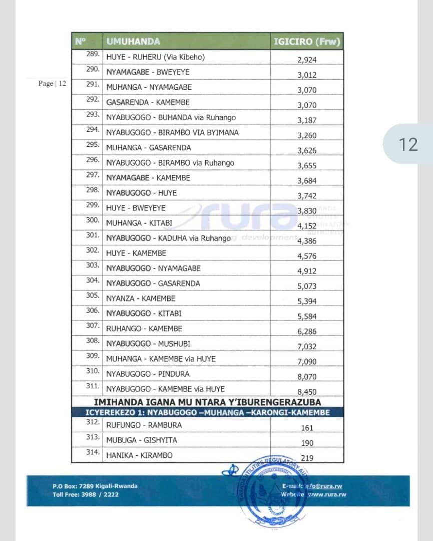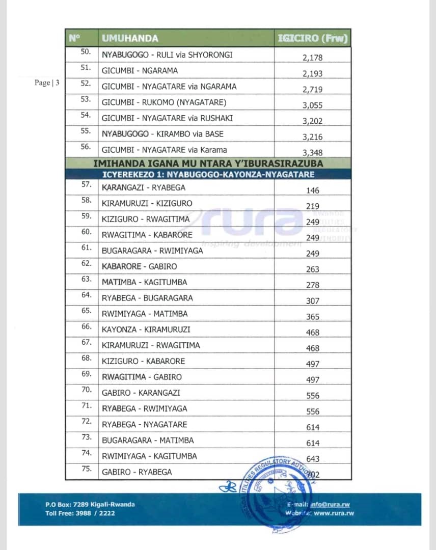 Urwego rw’Igihugu rushinzwe kugenzura imikorere y’inzego zimwe z’imirimo ifitiye Igihugu akamaro (RURA), ku wa Kabiri tariki 12 Werurwe 2024, rwashyize ahagaragara ibiciro bishya by’ingendo mu modoka zitwara abantu mu buryo bwa rusange, bikazatangira gukurikizwa ku wa Gatandatu tariki 16 Werurwe 2024.