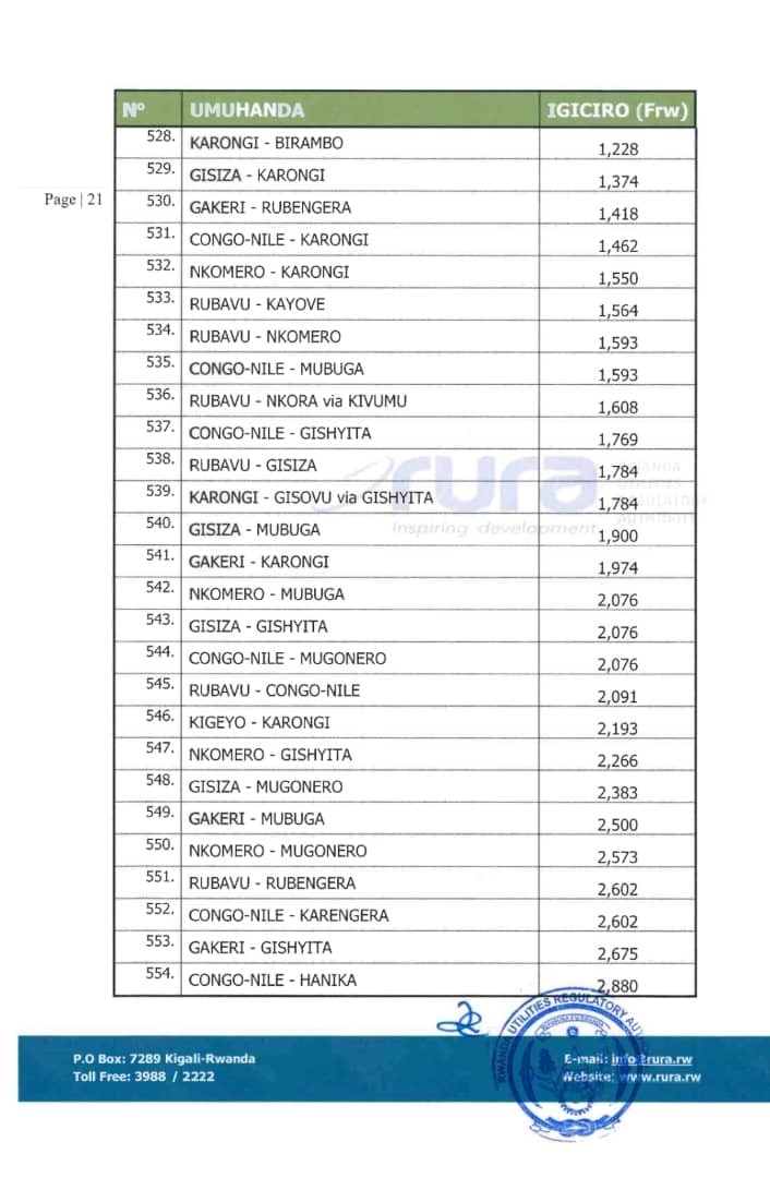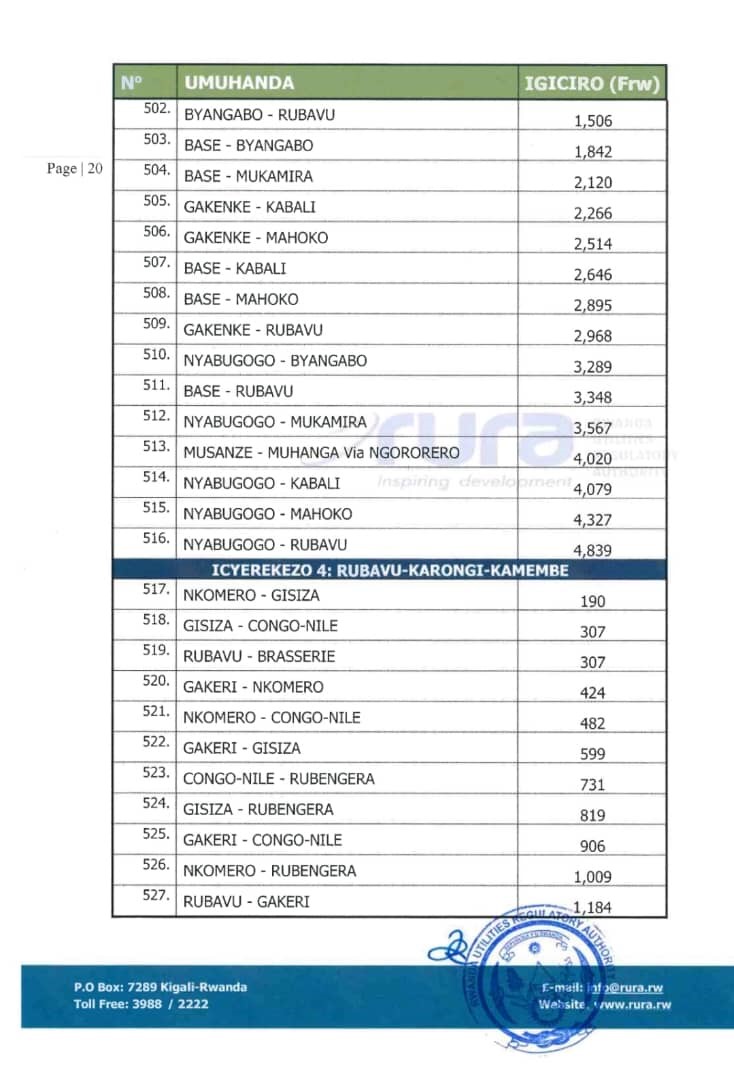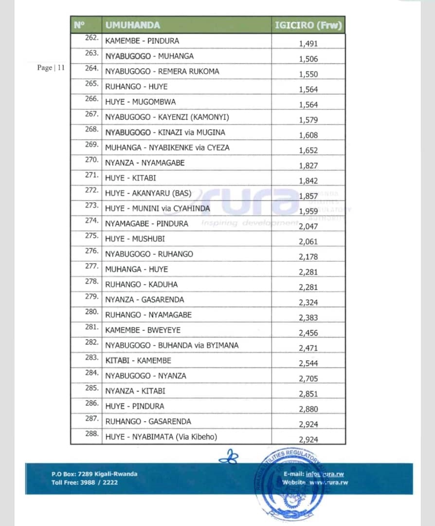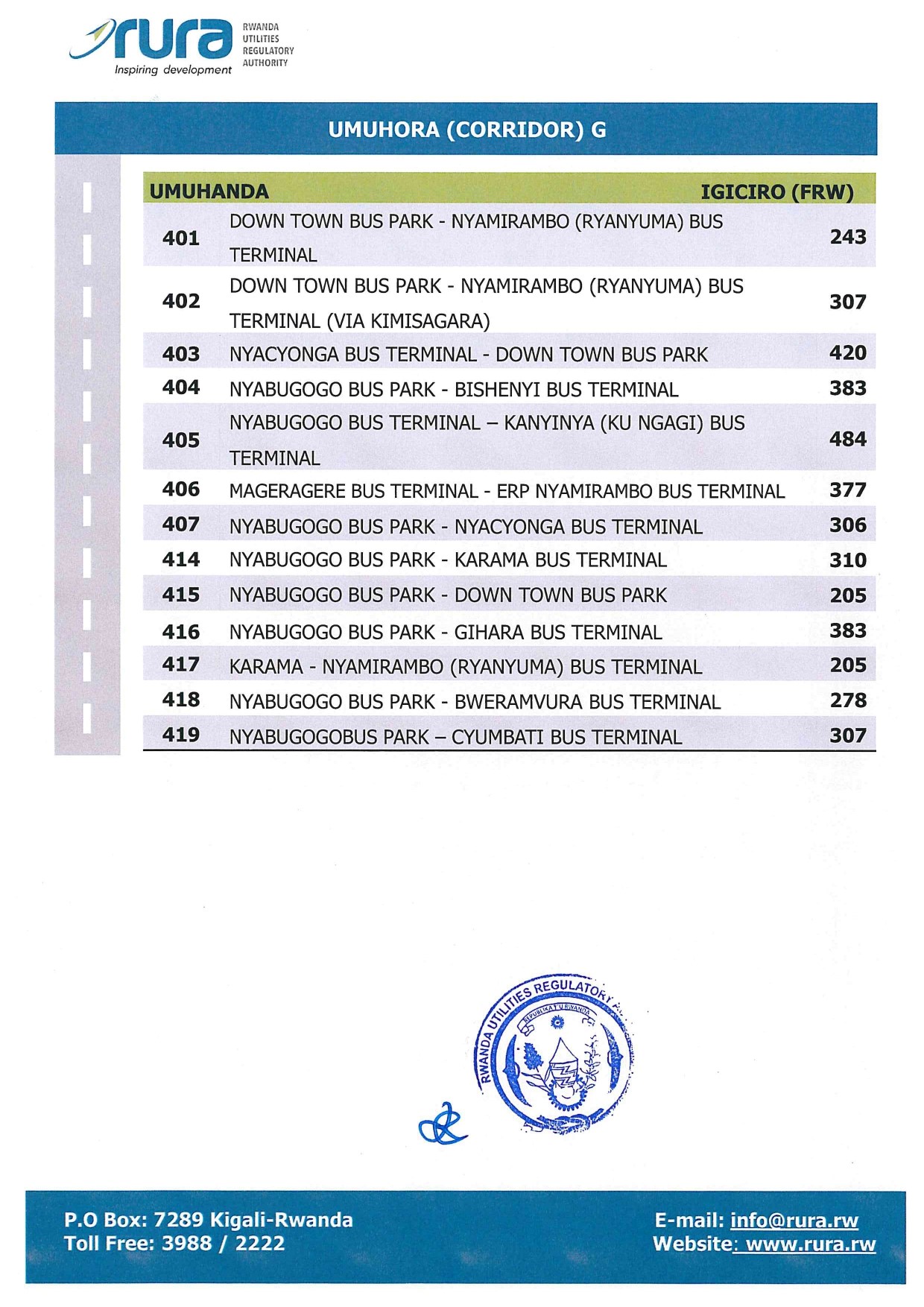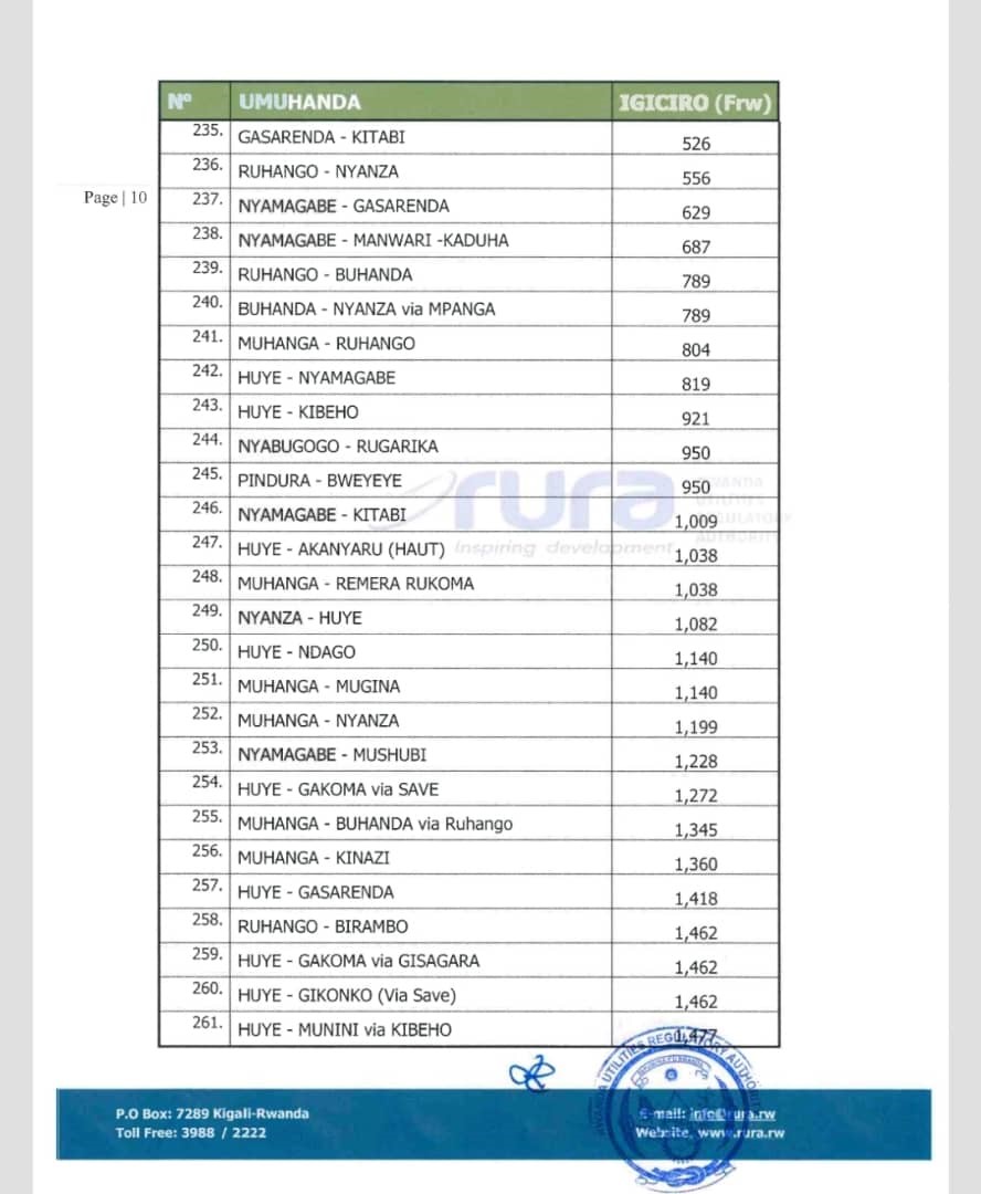 Urwego rw’Igihugu rushinzwe kugenzura imikorere y’inzego zimwe z’imirimo ifitiye Igihugu akamaro (RURA), ku wa Kabiri tariki 12 Werurwe 2024, rwashyize ahagaragara ibiciro bishya by’ingendo mu modoka zitwara abantu mu buryo bwa rusange, bikazatangira gukurikizwa ku wa Gatandatu tariki 16 Werurwe 2024.