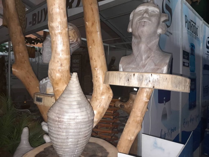 Nsengiyumava Beatrice LTD Umuyobozi wa Giti Buye Art ni umunyabugeni witabiriye imurikagurisha ry’uyu mwaka avuga ko ibihangano bye abikora mu mabuye no mu biti.