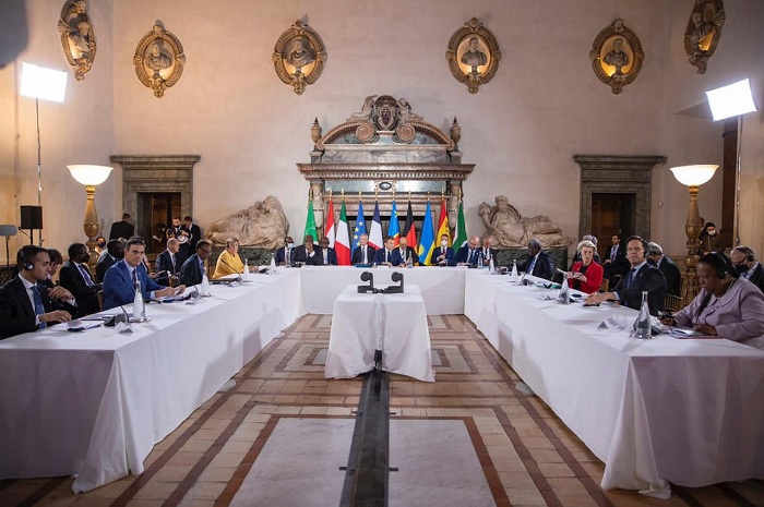 Perezida Kagame ari kumwe na Mario Draghi, Minisitiri w’Intebe w’u Butaliyani