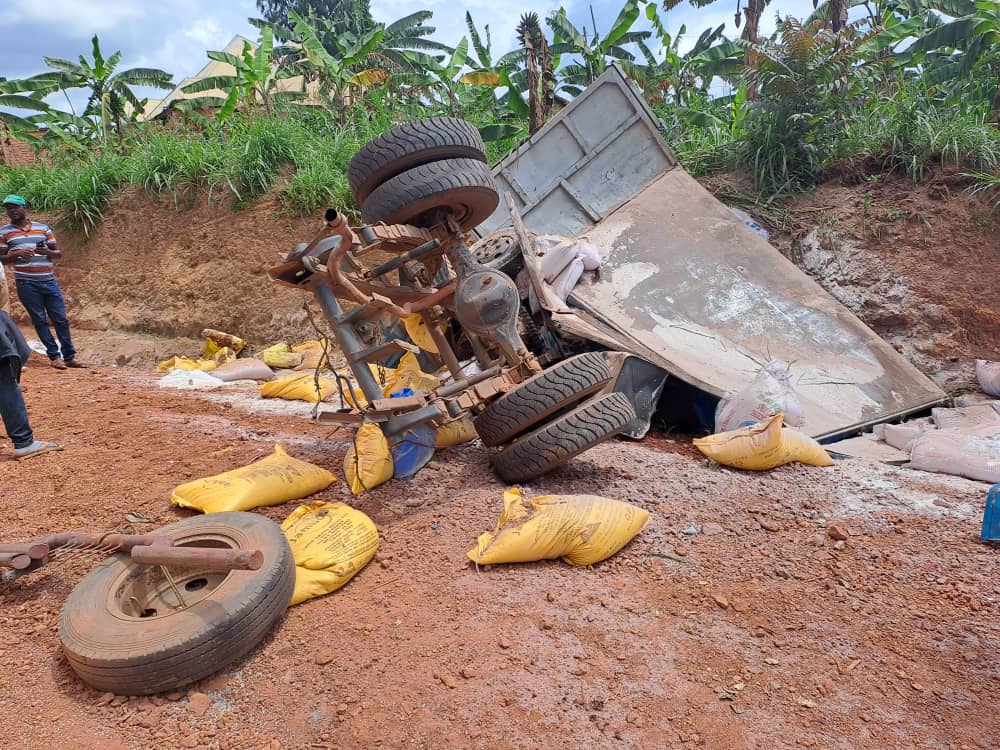 Ati “Imodoka yo mu bwoko bwa Daihatsu, yari ipakiye ibiribwa binyuranye, ubwo yamanukaga mu muhanda Kirenge-Rushashi, ageze ahitwa mu Ruganda, bishobora kuba ari ukubera umuvuduko mwinshi yari afite, bimunanira gukata ayikubita umukingo”.