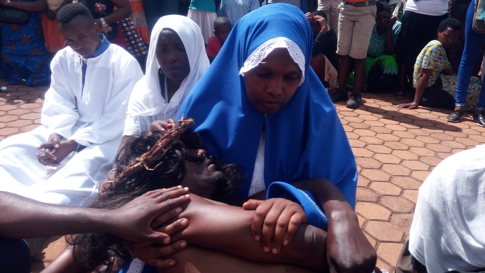 Ntakirutimana: Binsigira ukwemera kuko ndazirikana. Nzirikana iyo nzira Yezu yanyuze, kandi na kuriya abasaserudoti bagenda basoma inzira y’umusaraba abaririmbyi na bo baririmba, nanjye n’ubwo mba nkina Yezu ndazirikana.