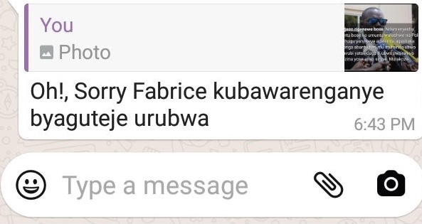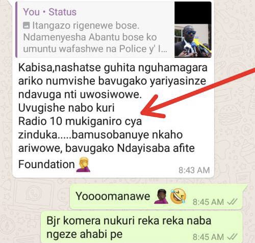 Ati “ Kuva uyu mugabo yatabwa muri yombi ndimo ndisobanura cyane pe. Abangaya bazi koko ko ari njye, abambaza niba koko ari njye nkabasobanirira ko ari uwo twitiranwa, ndetse hakaba hari n’abandi bari guhererekanya ubutumwa kuri whatsaap, bavuga ko batangajwe n’imyitwarire idakwiye umuyobozi wa Fondasiyo.”
