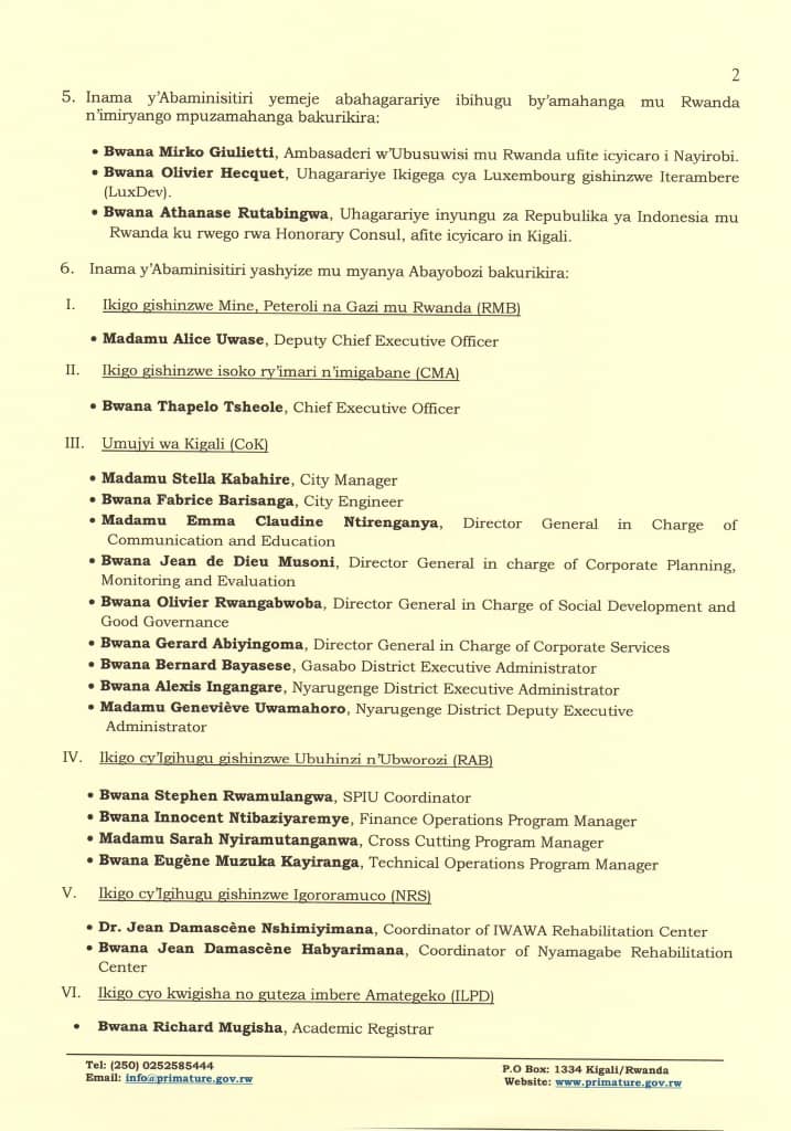Hari abayobozi bashyizwe mu myanya n’Inama y’Abaminisitiri
