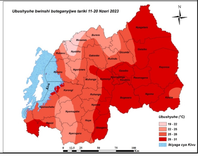 Ubushyuhe buteganyijwe ngo buzaba buri hejuru gato y’ikigero cy’impuzandengo y’ubushyuhe busanzwe buboneka hagati y’itariki ya 11 n’iya 20 Nzeri mu Rwanda.