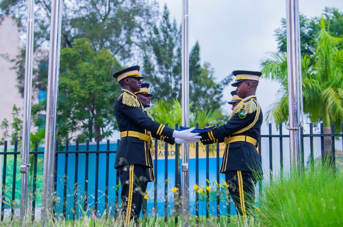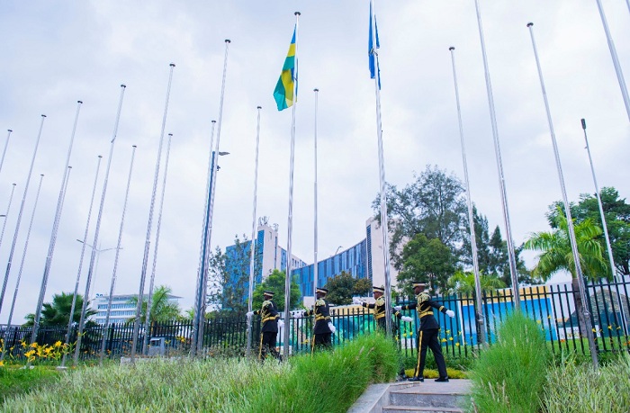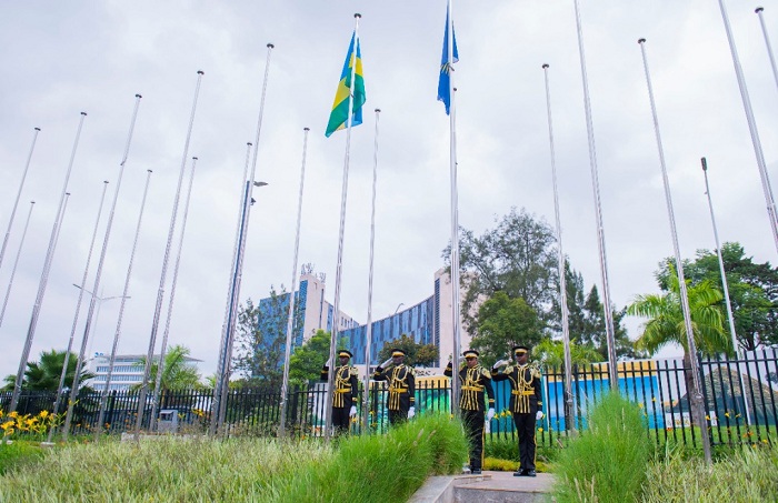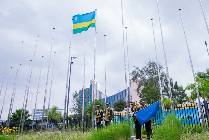 Iryo bendera ryazamuwe mu gitondo kuri uyu wa mbere tariki 09 Werurwe 2020 ku nyubako ya Kigali Convention Centre. Kuri iyo nyubako habereye n’ibirori byo kwizihiza umunsi wahariwe kuzirikana uwo muryango.