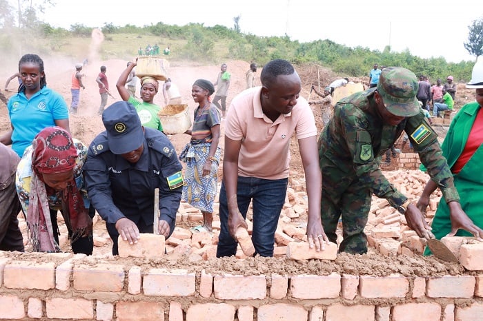 Mu Karere ka Bugesera, ubuyobozi bwifatanyije n’urubyiruko mu bikorwa rurimo byo kubakira abatishoboye I Ntarama.