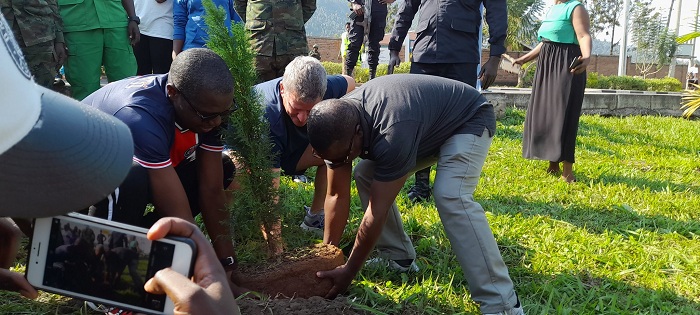 Guverineri Habitegeko mu gutangiza ubukangurambaga bw’isuku n’umutekano yifatanyije n’abaturage b’Akarere ka Rubavu mu bikorwa byo kunoza isuku, hatunganywa ubusitani buri ku nkengero z’imihanda, hanaterwa ibiti mu mujyi wa Gisenyi.