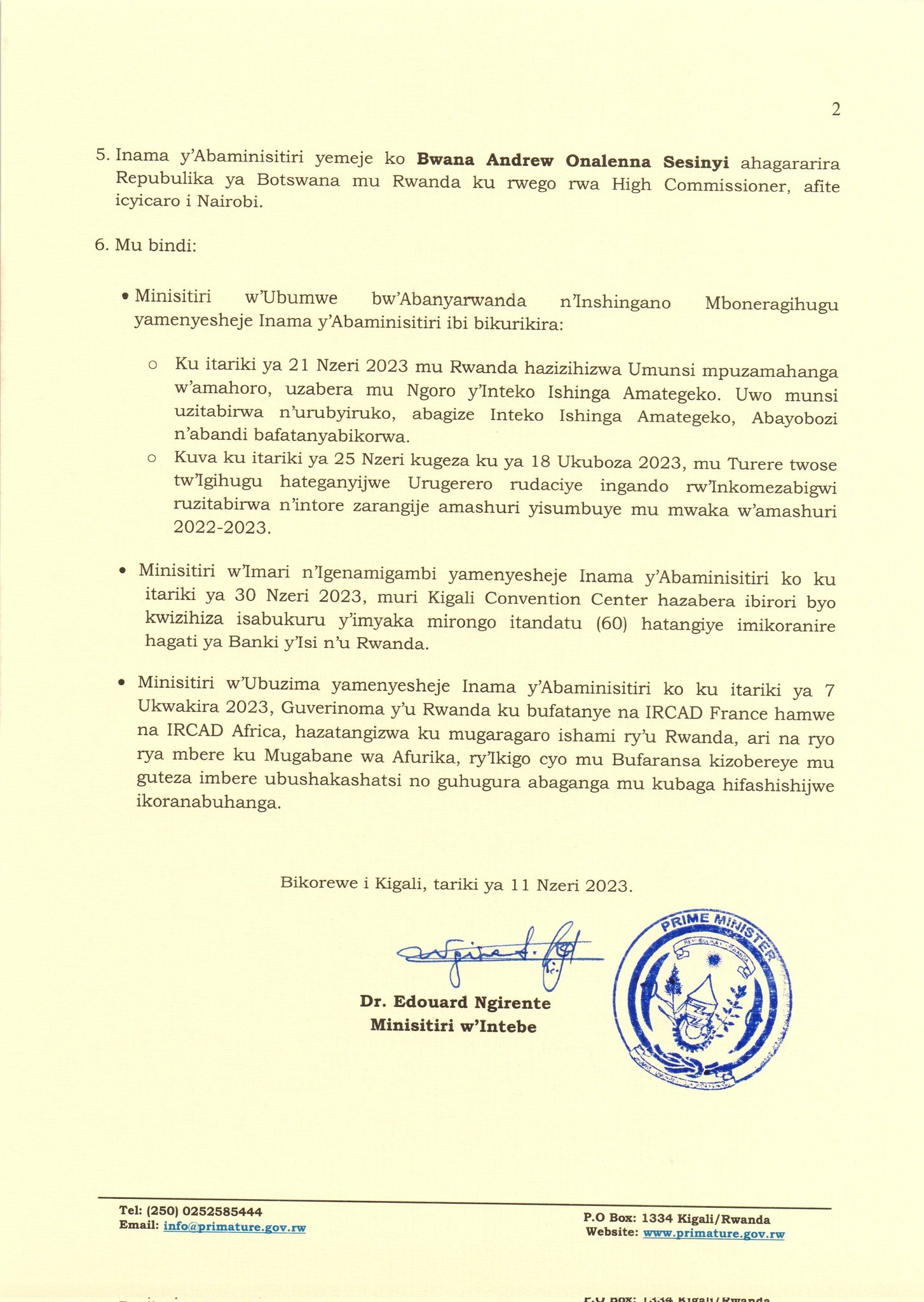 Dore imyanzuro yafatiwe mu Nama y’Abaminisitiri yo kuri uyu wa Mbere: