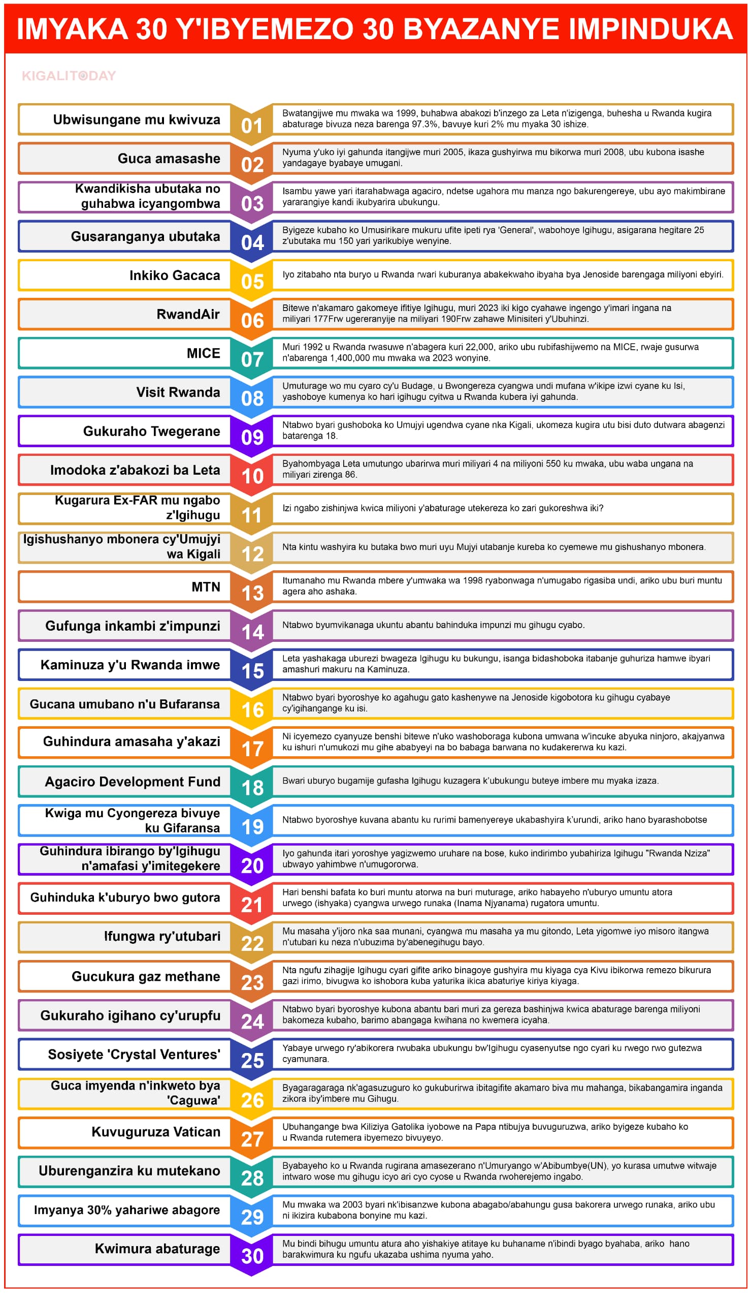 Icyegeranyo: Imyaka 30 y’ibyemezo 30 byazanye impinduka