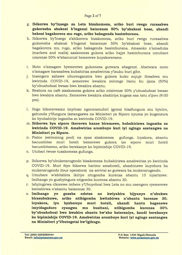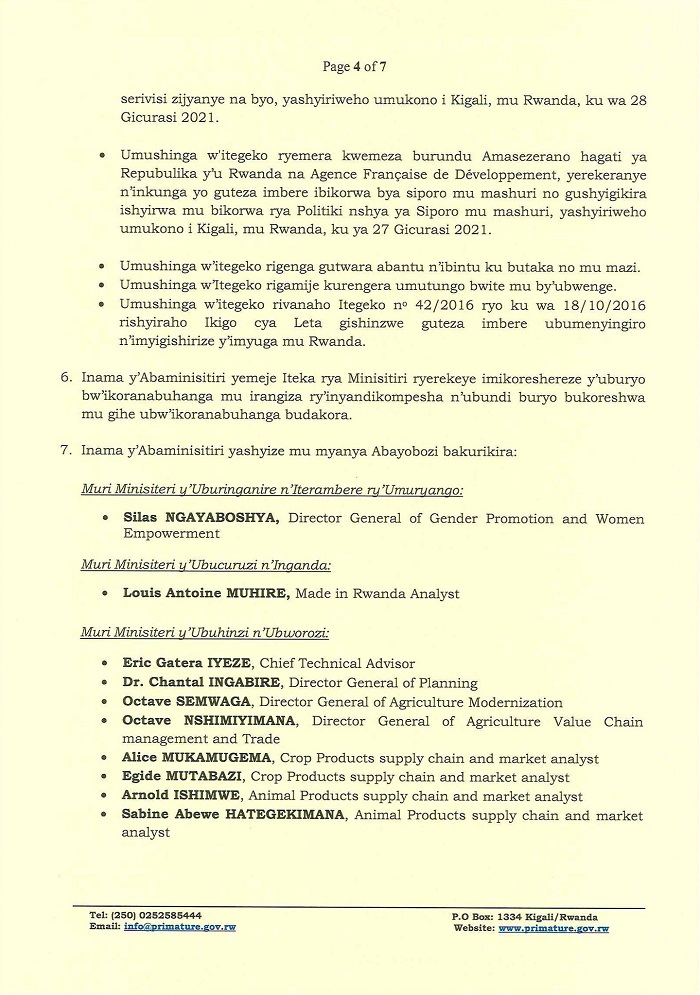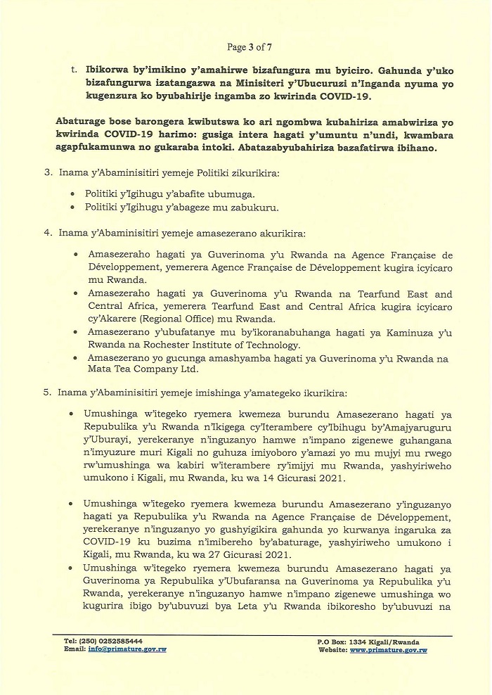 Ibyemezo by’inama ya baminisitiri rwose tubashimiye ibyemezo byiza bakomeje gufata cyane hibarwa kinyungu z’igihugu ariko byumwihariko kubuzima bwacu nkabanyarwanda rero rwose dukomeje kubashimira ,ikindi tunabashimira ibyemezo bafashe harimo no kubaha umuco wacu ,cyane mumihango y’ubukwe bityorero nubwo gusaba no gukwa byemewe hakurikijwe umubare watazwe ariko natwe nkimiryango tuzirinde kungora Abayobozi Ahubwo twubahirize amabwiriza yose yatazwe n’imibare yemewe.