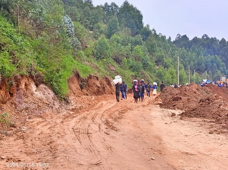 Umuhanda Huye-Nyamagabe ahitwa ku Karambi wangiritse ku wa Mbere tariki 15 Mutarama 2024, bituma ufungwa ku buryo nta binyabiziga byatambukaga, ariko mu gitondo cyo kuri uyu wa Kabiri, imashini zikaba zahazindukiye zikora ahandi hafasha imodoka nto gutambuka, ubu zikaba zatangiye kugenda ndetse n’inini zemerewe kuhanyura.