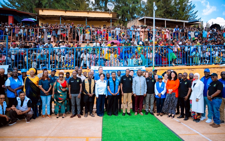 Babigaragarije Minisitri w’Ibikorwa by’Ubutabazi hamwe n’abandi bashyitsi babagendereye tariki 20 Kamena 2024, bifatanyije mu kwizihiza umunsi mpuzamahanga w’impunzi.