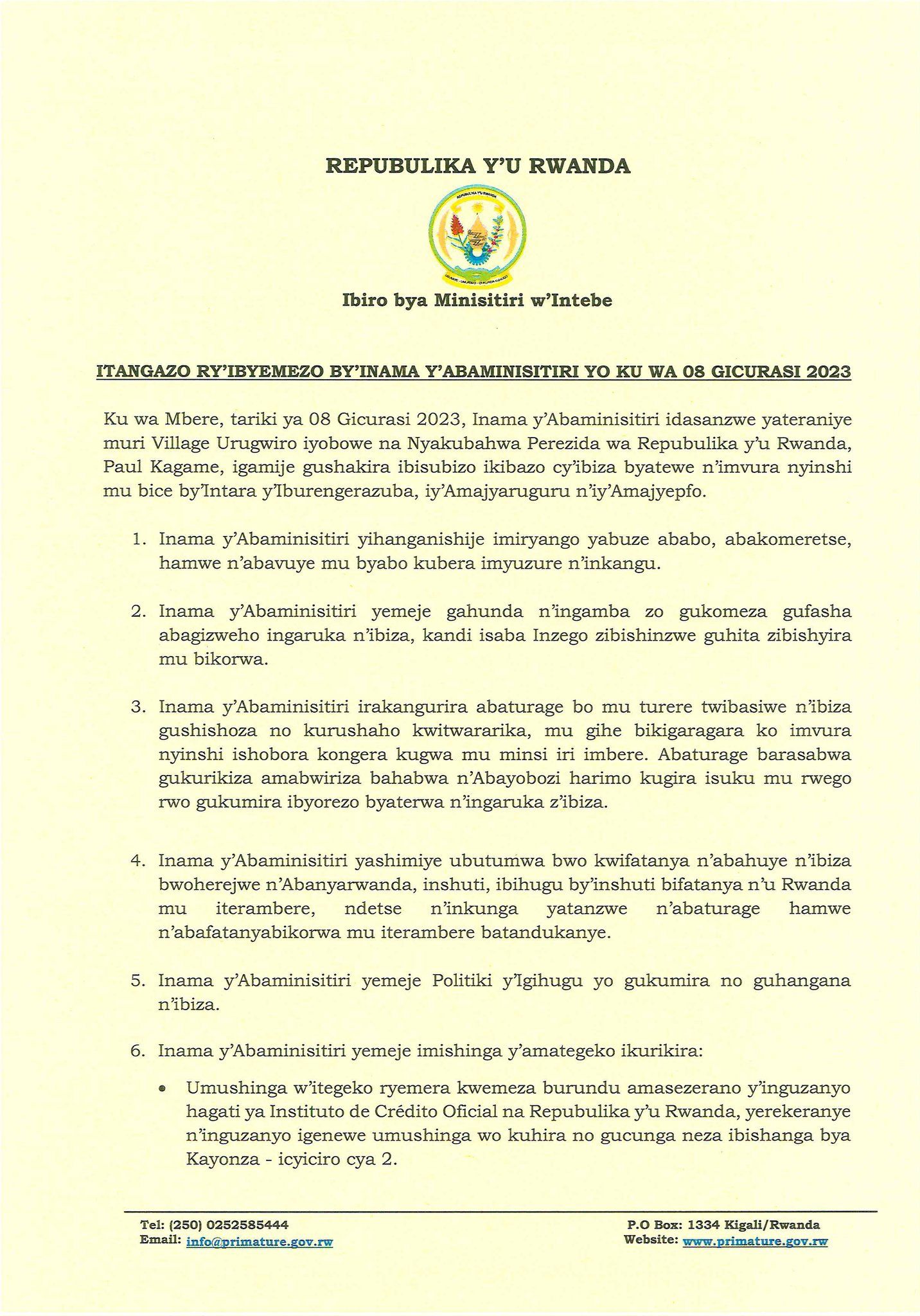 Ibi ni ibyemezo byafatiwe muri iyo nama: