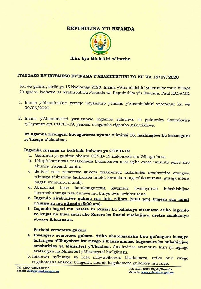 Twishimiye imyanzuro y ibyemezo by inama y abaminisitiri kuba yafunguye ninsengero Minaloc nidufashe itubwire igihe zizafungurirwa niba Ari kuri 19/07/2020.
