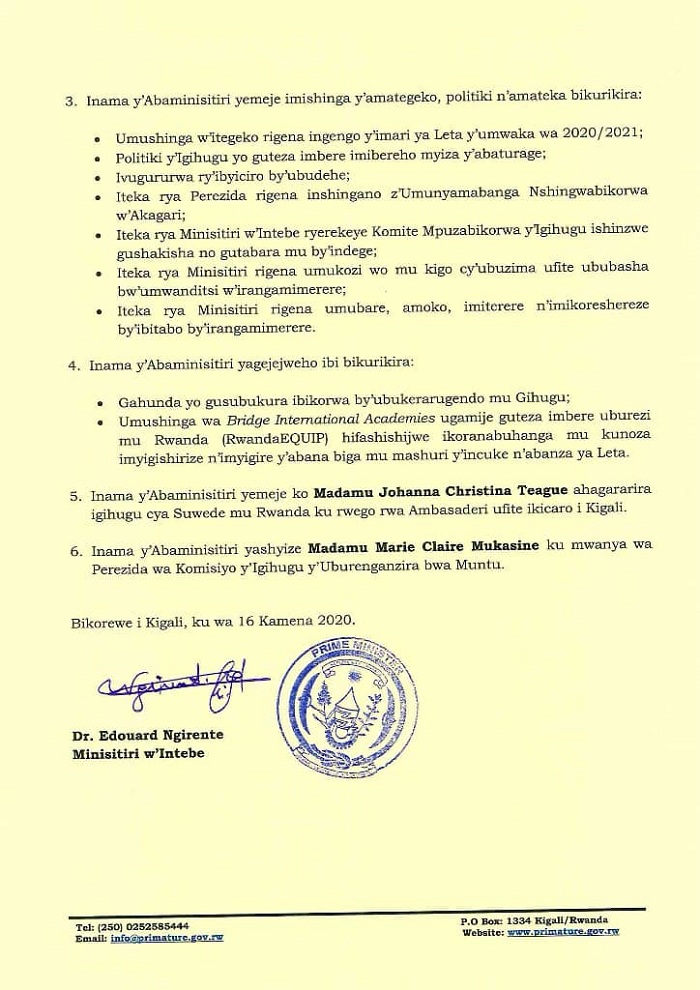 4. Inama y’Abaminisitiri yagejejweho ibi bikurikira: