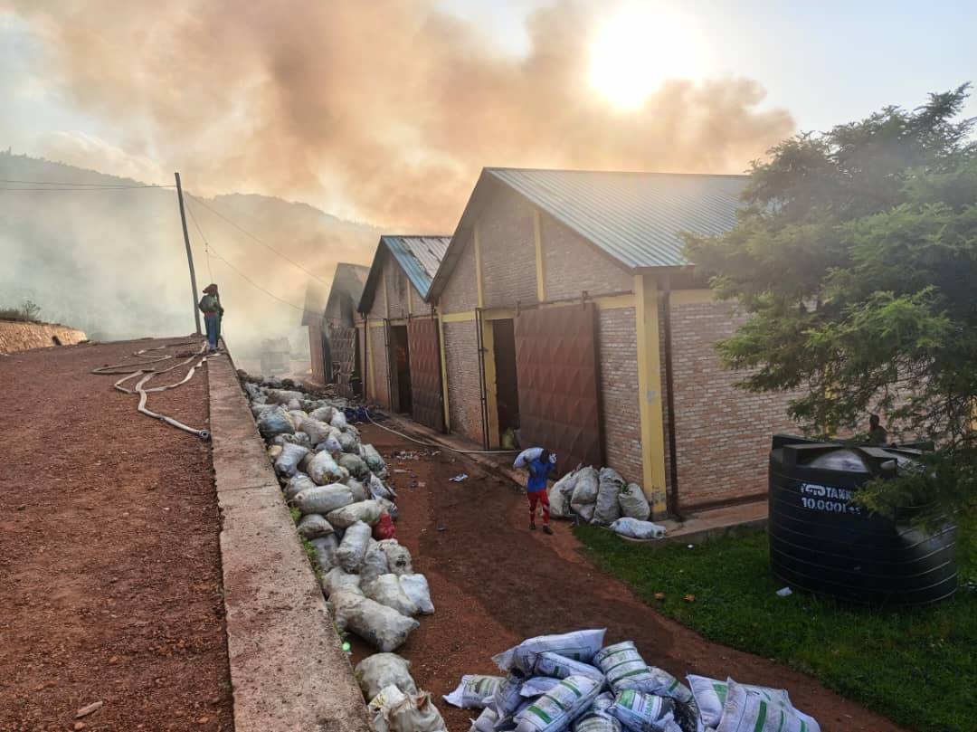 Ati “Inkongi itangira hari mu gihe cy’ikiruhuko cya saa sita. Aho twari turi turimo turuhuka twagiye kubona tubona umwotsi, tugerageje kuzimya na kizimyamoto zisanzwe biranga kuko mu byari byamaze gufatwa harimo amashashi n’amapamba. Byaturushije imbaraga.”