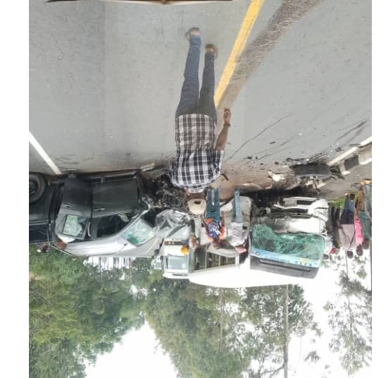Yunzemo ko impanuka yatewe n’inyuranaho ryakozwe nabi, no kutaringaniza umuvuduko byakozwe na shoferi wari utwaye Toyota Vigo wataye umukono.