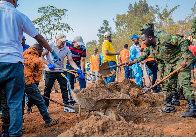 Uhagarariye Leta zunze Ubumwe z’Abarabu mu Rwanda, H.E. Hazza Mohammed Falah Kharsan AlQahtani, yavuze ko yishimiye kwifatanya n’Abaturage mu gikorwa cy’umuganda, aho igihugu cye cyatanze inkunga y’imifuka 140 ya sima.
