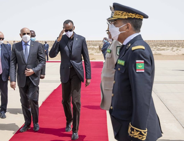 Perezida Kagame yageze muri Mauritania ku mugoroba wo ku wa 23 Gashyantare 2022, ku kibuga cy’indege cya Nouakchott–Oumtounsy International Airport, akaba yakiriwe na mugenzi we Mohamed Ould Cheikh Mohamed Ahmed Ould Ghazouani.