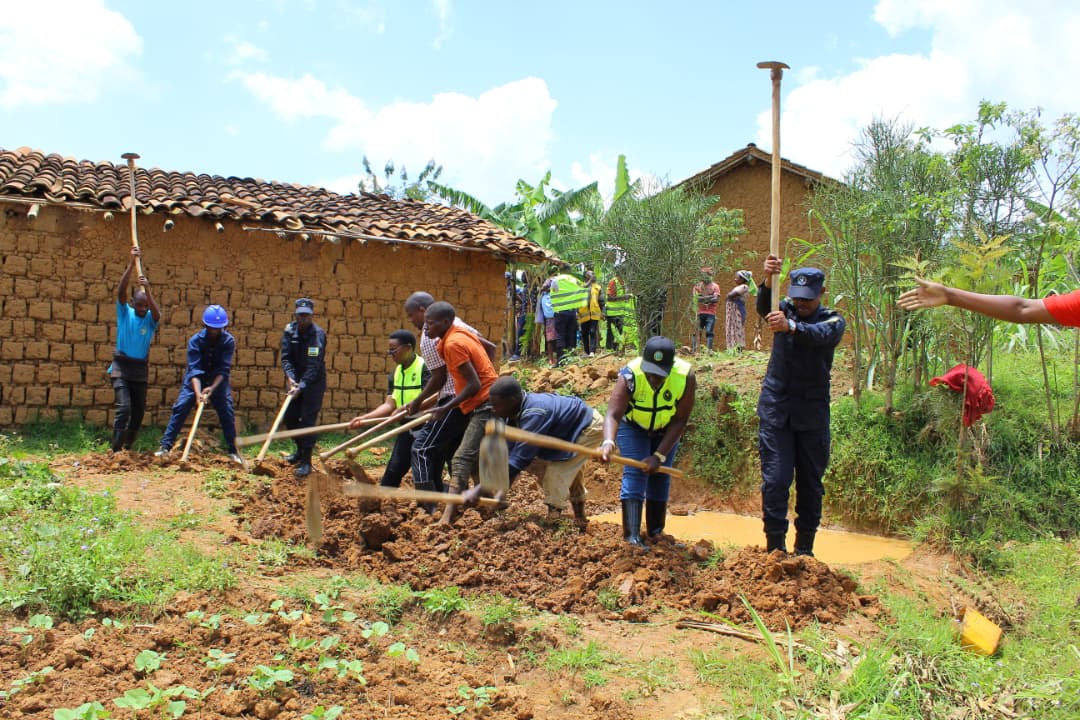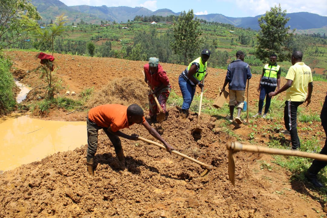 Babisabwe mu gikorwa cyo gutangiza ukwezi kw’ibikorwa by’ubukorerabushake mu Murenge wa Kibangu mu Karere ka Muhanga, ahakozwe umuganda udasanzwe wo kubaka inzu zirindwi z’abaturage basenyewe n’ibiza, zigeze mu gihe cyo gushyiraho ibisenge.