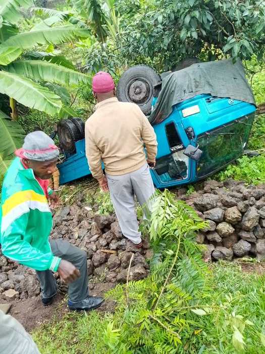 Yagize ati “Ni imodoka yari ipakiye inkwi, iturutse ahitwa Rukereza yerekeza mu mujyi wa Musanze, igeze hafi y’ikigo cya Polisi ahazamuka cyane, inanirwa kuzamuka umusozi ibuze feri isubira inyuma, igwa mu rutoki ruri ahongaho amapine areba hejuru.
