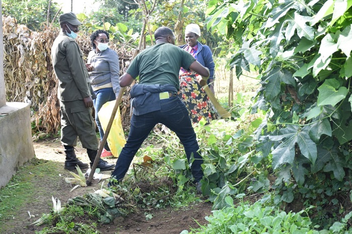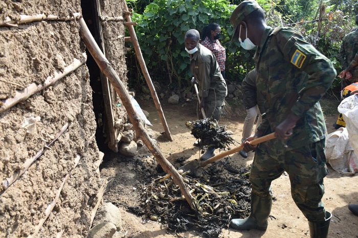 Mu kugerageza gukiza uru rugo umwanda ukabije, abitabiriye iki gikorwa bafatanyije gutema ibihuru byari byaraharengeye, baraharura bakubura imbuga, ndetse banasohora ibyo birundo by’imyanda basanze mu nzu.