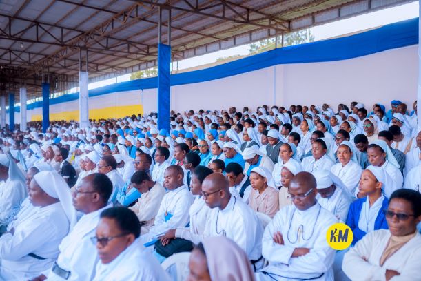 Nyuma yo guhabwa ibimenyetso bya gishumba, Abapadiri ba Diyosezi ya Kabgayi bamunyuze imbere baca bugufi nk’ikimenyetso cy’uko bazamwumvira, bakemera aho azabatuma hose.