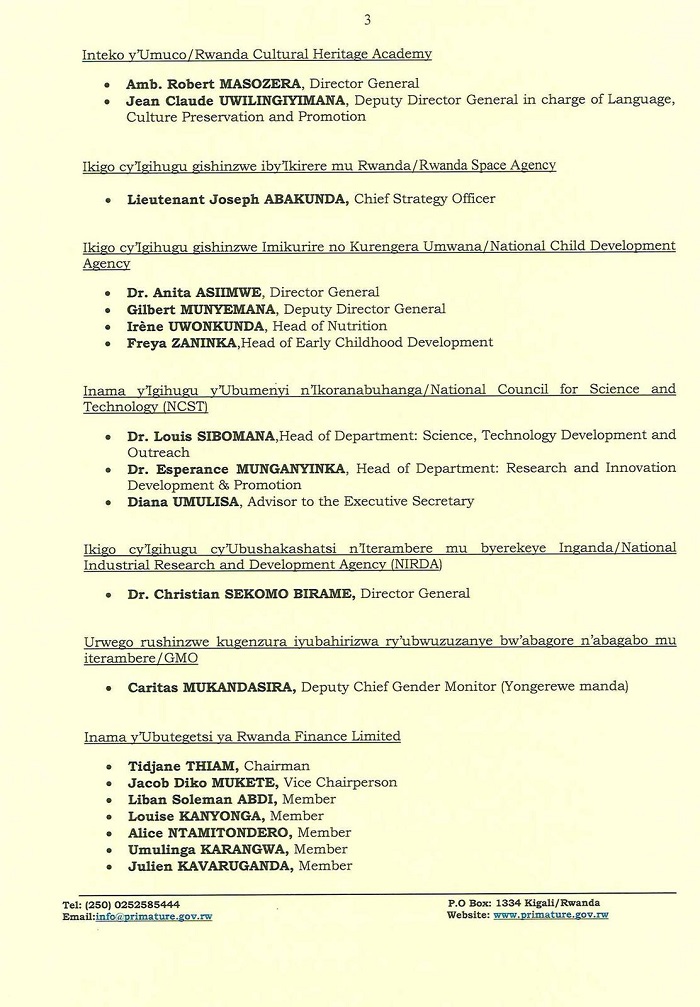 Hari abandi bayobozi batandukanye bashyizwe mu myanya n’Inama y’Abaminisitiri yateranye ku wa Gatatu tariki 11 Ugushyingo 2020, nk’uko bigaragara muri iri tangazo ry’Ibyemezo by’iyo nama y’Abaminisitiri.
