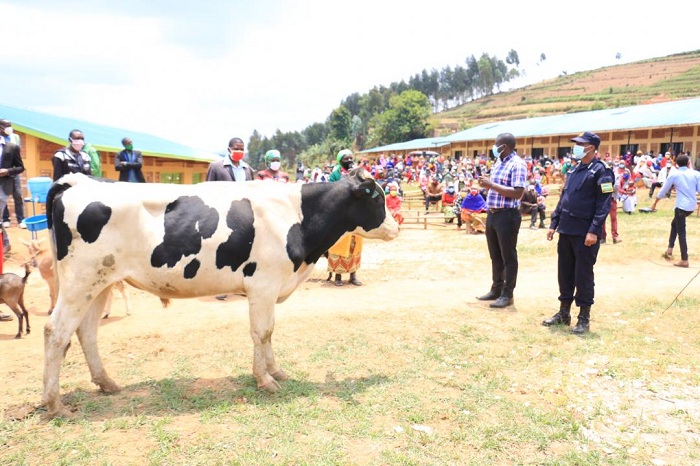 Muri iki gikorwa cyo gutanga imfizi, imiryango ine yanahawe amatungo atandukanye arimo inka imwe, ihene n’intama.