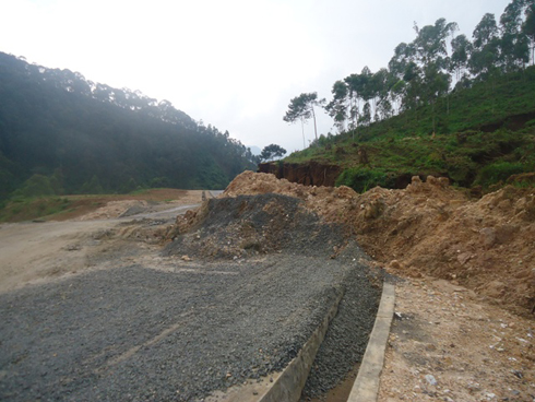 Igice bigaragara ko ari kinini cy’ubutaka buri haruguru y’umuhanda unyura muri aka gace cyaratengutse gisenya umuhanda wari umaze kuba nyabagendwa, ndetse kirawutirimura ku buryo aho wasenyukiye (hagana epfo) ari ho ibinyabiziga bisigaye binyura.