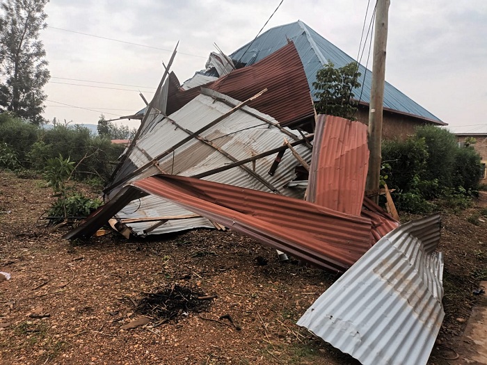 Ati “Mu Murenge wa Kigali haguye imvura nyinshi ivanzemo inkuba n’umuyaga mwinshi, twabaruye ibyumba by’amashuri 6 n’igikoni byasambutse ibisenge biraguruka, inzu z’imiryango 12 n’ibisenge by’inzu 12 z’abaturage”.