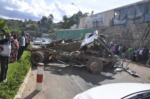 Iyi kamyo yaturukaga mu bice bya Gacuriro mu murenge wa Kinyinya yabuze feri maze igiye gukata irenga umuhanda imanuka hejuru y’umukingo igwa mu wundi muhanda uturuka UTEXRWA ugana Nyarutarama; nk’uko twabitangarijwe n’ababonye iyo mpanuka.