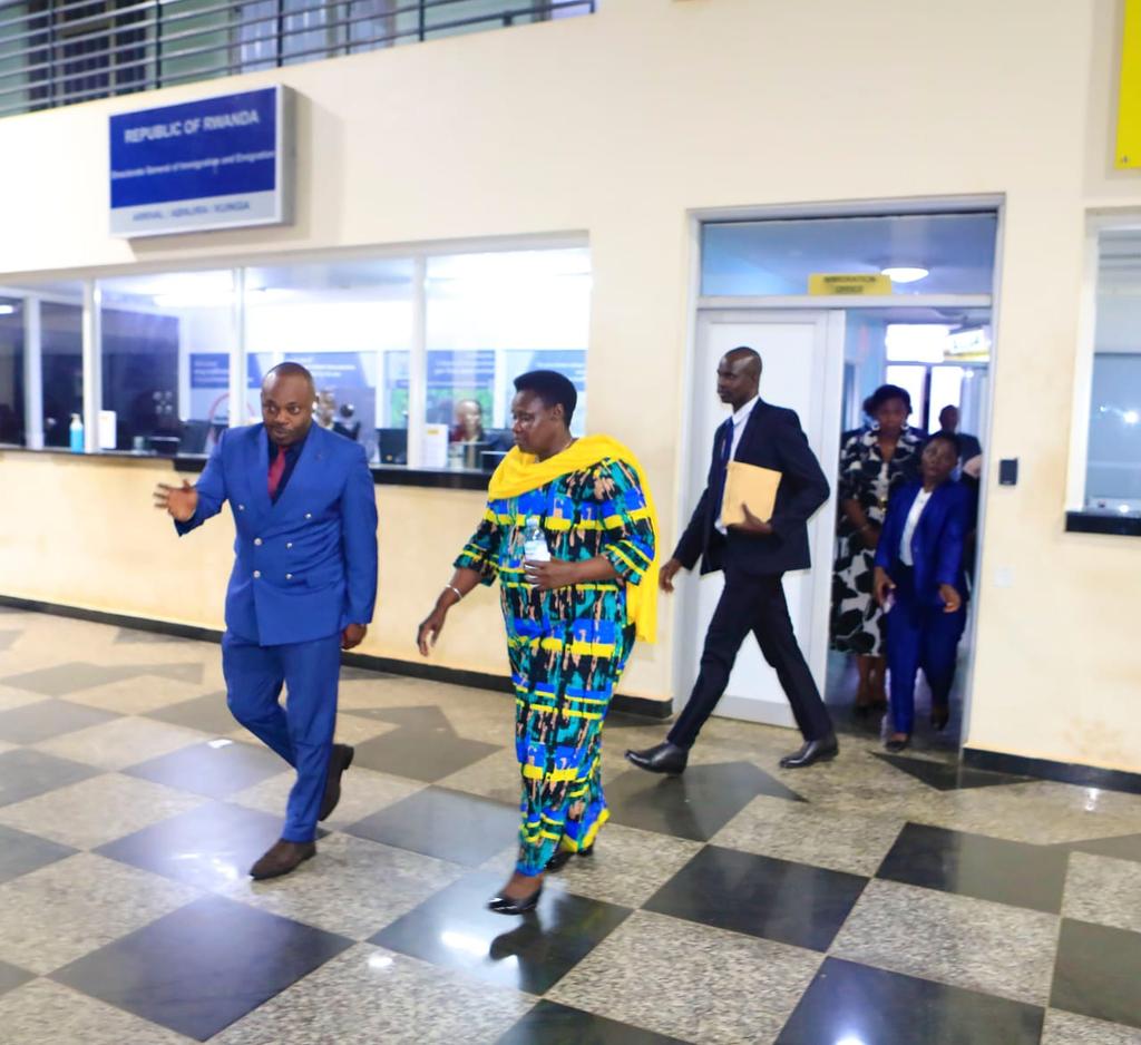 Visi Perezida wa Uganda, Jessica Alupo, yageze i Kigali anyuze ku Mupaka wa Gatuna. Yakiriwe n’Umunyamabanga wa Leta muri Minisiteri y’Ibidukikije, Dr. Claudine Uwera wari kumwe na Ambasaderi wa Uganda mu Rwanda, Maj Gen (Rtd) Robert Rusoke.