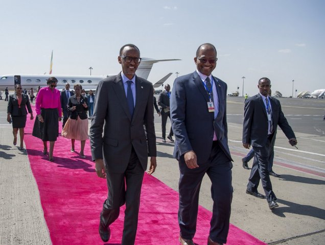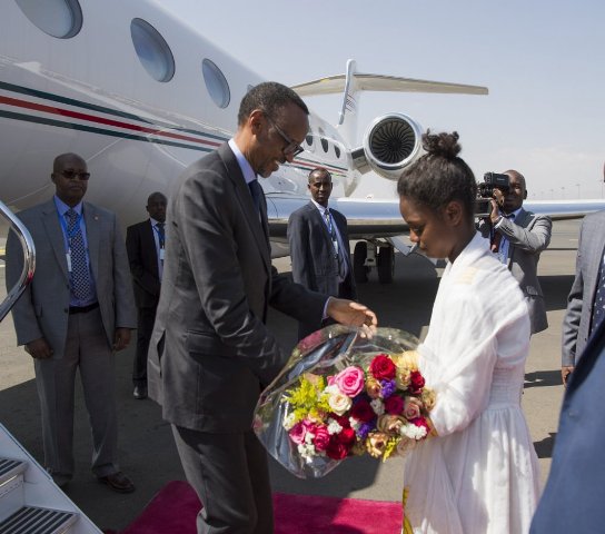 Perezida wa Repubulika Paul Kagame na Madamu Jeannette Kagame kuri uyu wa Gatandatu bamaze kugera i Addis Ababa muri Ethiopia, aho bagiye kwitabira iyi nama iba inshuri ebyiri mu mwaka.