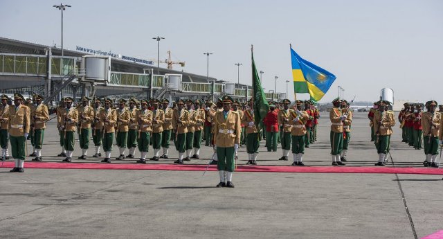 Dore mu Mafoto na Video Uburyo Perezida Kagame na Madamme Jeannette Kagame bakiriwe i Addis Ababa muri Ethiopia