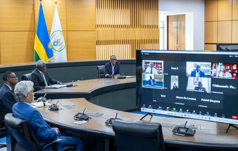 Iyi nama yabaye hifashishijwe ikoranabuhanga, Perezida Kagame yari kumwe n’Umuyobozi wa Komisiyo ya AU, Moussa Faki Mahamat, yasuzumiwemo ishyirwa mu bikorwa ry’ayo mavugurura.
