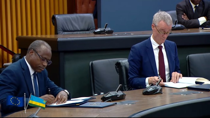 Ati: “U Rwanda n’Umuryango w’Ubumwe bw’u Burayi byabaye abafatanyabikorwa bakomeye, mu byukuri n’inshuti, kuva kera. Mu myaka yashize, twongereye ubufatanye mu nzego zitandukanye. Amasezerano yombi yashyizweho umukono uyu munsi ni urugero rw’ibihari. Hariho n’ibindi bintu byinshi dusanzwe dufatanyamo bya hafi.”
