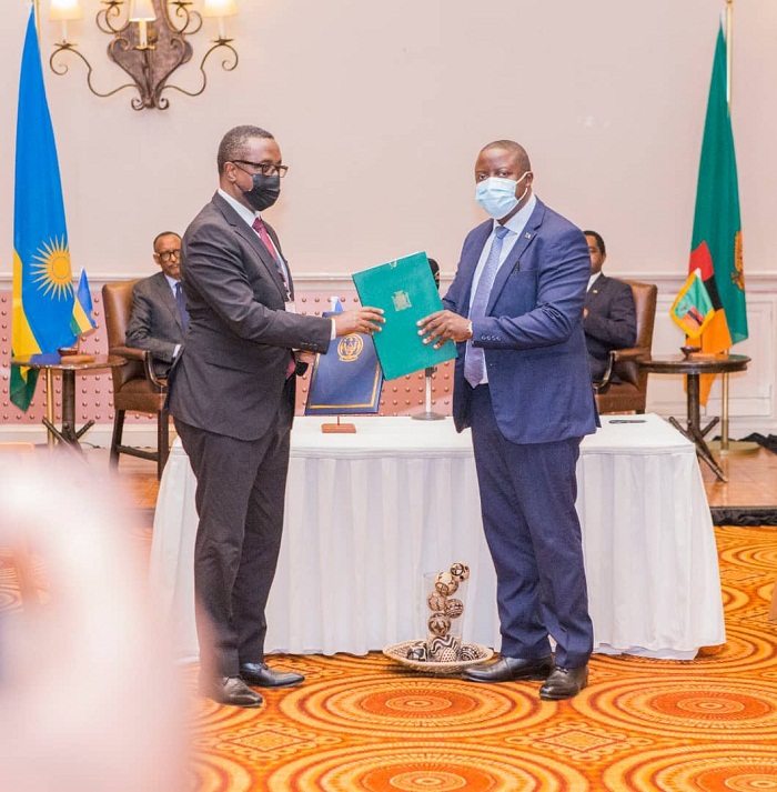 Ayo masezerano yasinywe hagati y’ibihugu byombi, yashyizweho umukono n’abaminisitiri b’Ububanyi n’amahanga n’ubutwererane ku mpande zombi, uruhande rw’u Rwanda hari Dr Vincent Biruta, mu gihe Zambia yari ihagarariwe na Stanley Kakubo.