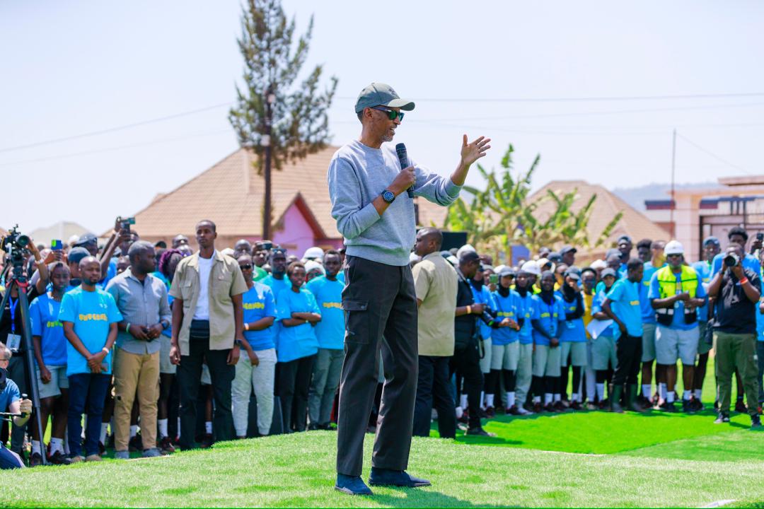 Perezida wa Repubulika, Paul Kagame, yifatanyije n’urubyiruko rwitabiriye iserukiramuco rya Giants of Africa mu muganda udasanzwe wo kubaka imihanda mu Mudugudu wa Mukoni mu Murenge wa Kigali mu Karere ka Nyarugenge.