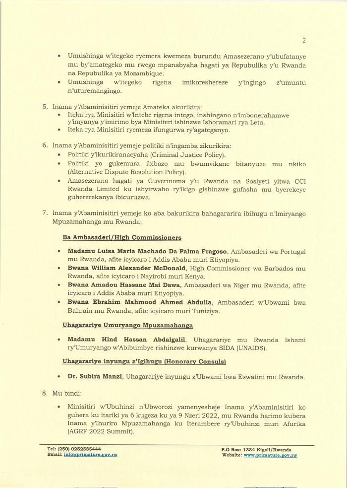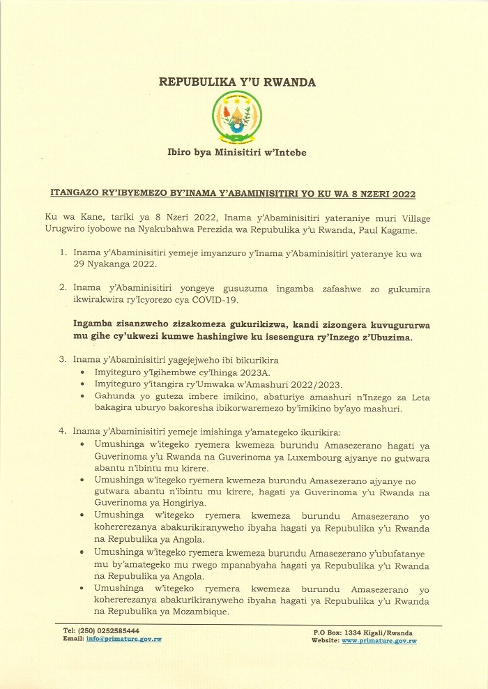 Ibyemezo by’inama y’Abaminisitiri: