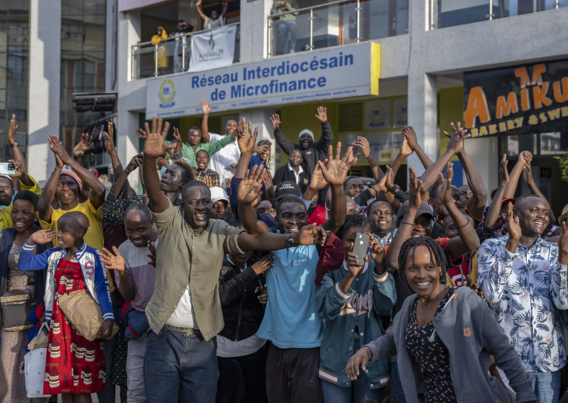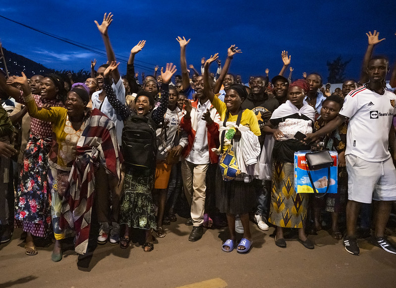 Abo baturage bunganirwa n’abandi na bo bamupeperaga bagira bati “Kagame wacu, Muzehe wacu, Kagame wacu”.