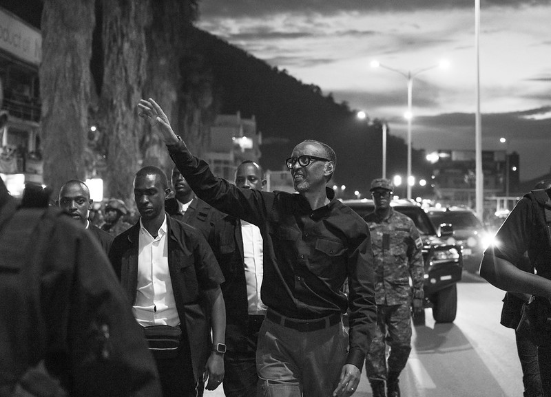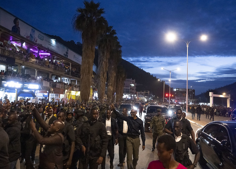 Perezida Kagame n’itsinda bari kumwe baturutse i Rubavu, yageze mu mujyi rwagati wa Musanze mu ma saa kumi n’imwe zirengaho iminota micye z’umugoroba. Ubwo yageraga hafi y’igorofa ry’ubucuruzi ry’ahazwi nko ‘Kwa Rukara’, yavuye mu modoka yari imutwaye agenda n’amaguru ari nako apepera abaturage, bari ku nkengero z’imihanda abandi buriye amagorofa, biyamiraga mu byishimo byinshi bagira bati “Ni wowe, ni wowe, ni wowe”.